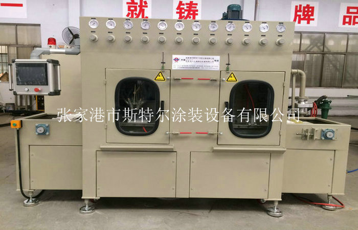 5.斯特爾設計制造的通過式噴砂機可以實現皮帶輸送、鏈條式輸送、滾軸式輸 送、懸掛式輸送等方式結構。