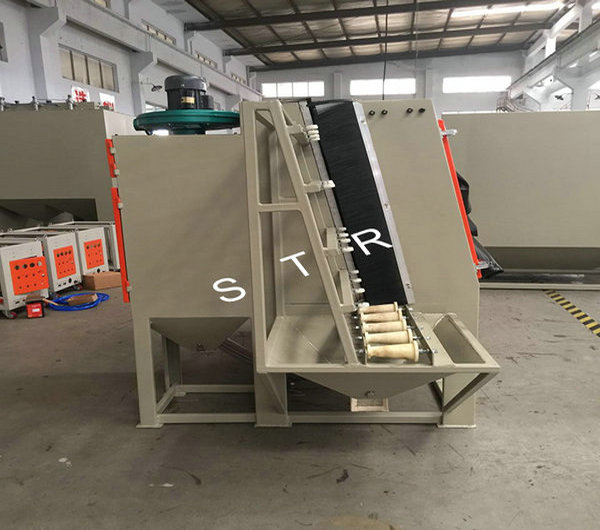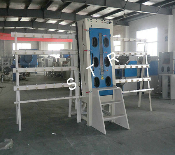 Flat glass, marble, metal plate vertical through the type dry sandblasting machine,