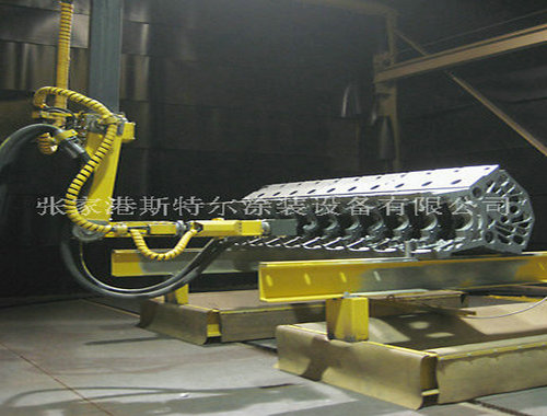 斯特爾公司研發的數控全自動噴砂房能夠極大的降低運營的代價和改善高效率并且能夠在質量上優與手工操作,我公司在滿足生產質量、生產效率、運行成本的理念下研發機器人噴砂(丸)房。